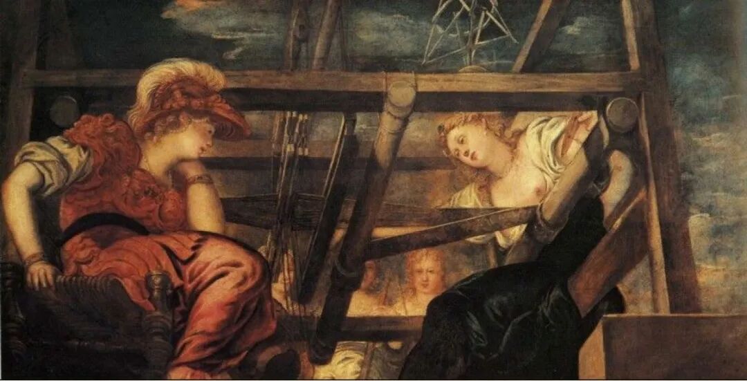 ▲ 《雅典娜与阿拉克涅》,丁托列托 绘,1544年